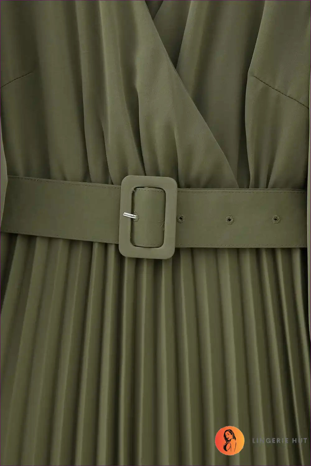 - What fabric is the Elegant Belted Pleated Dress made from? The dress is crafted from high-quality fabric that ensures comfort and durability.