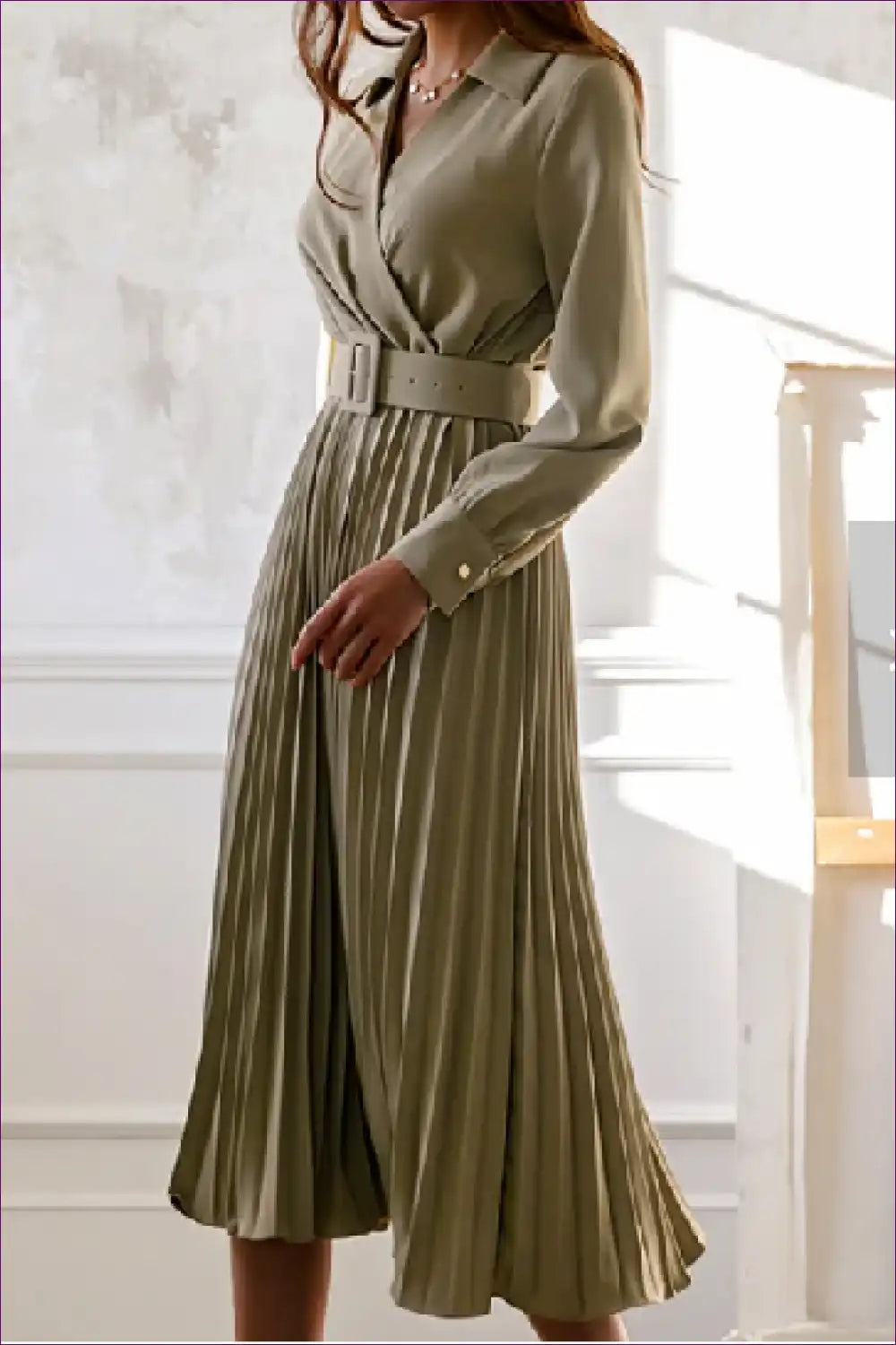 Step into timeless elegance with our Elegant Belted Pleated Dress and make every moment count!